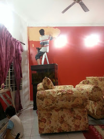 Tu dia..merah menyala kak tonnnnn..babah cat feature wall sorang2.ummi cuma tgk dr bwh je mana sekata mana tak..ummi cat railing tangga, pehtu jemaah dgn babah cat grill dan pago..hoihh..penat hokeyhh..susah rupanya nk cat grill..bulan pose lak tu..mmg pengsan ujonh mggu..dua mggu akhir puasa pulun itu je..